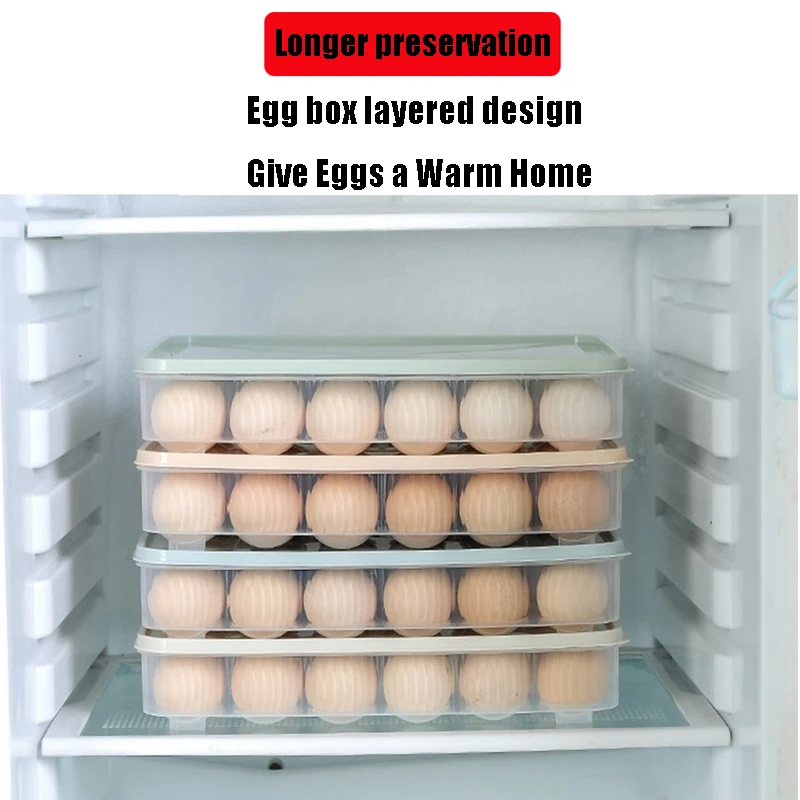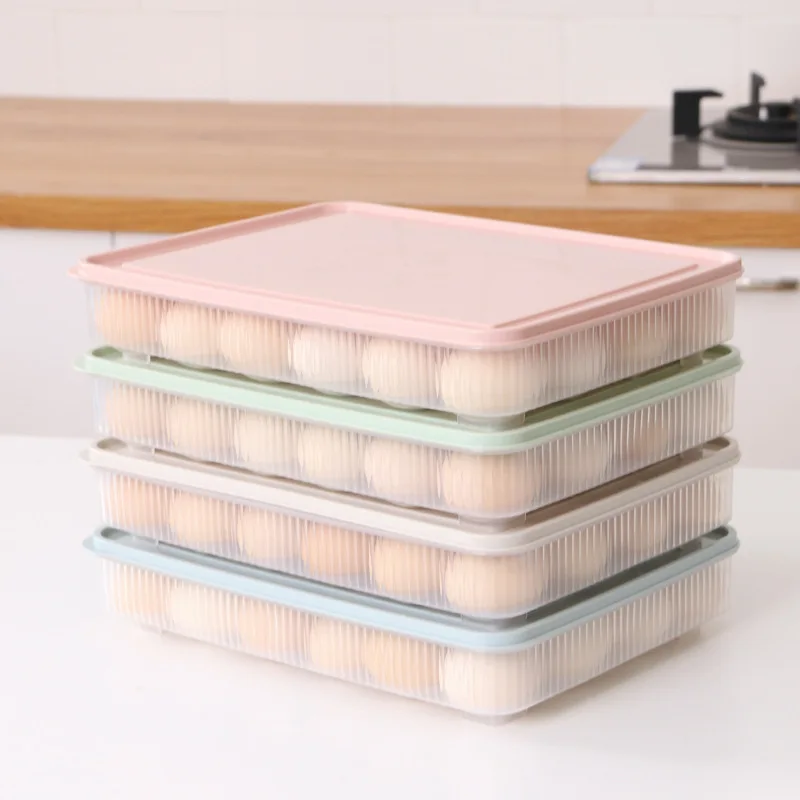 24 Grids Refrigerator Egg Storage Box Kitchen Refrigerator Household Preservation Plastic Dumpling Fresh-keeping Case Holder